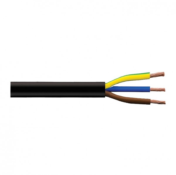 3 Core 1.5mm² Black Rubber Flex Cable - 16amp