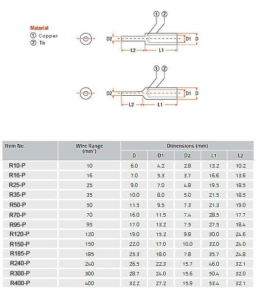 - Terminal body: Copper