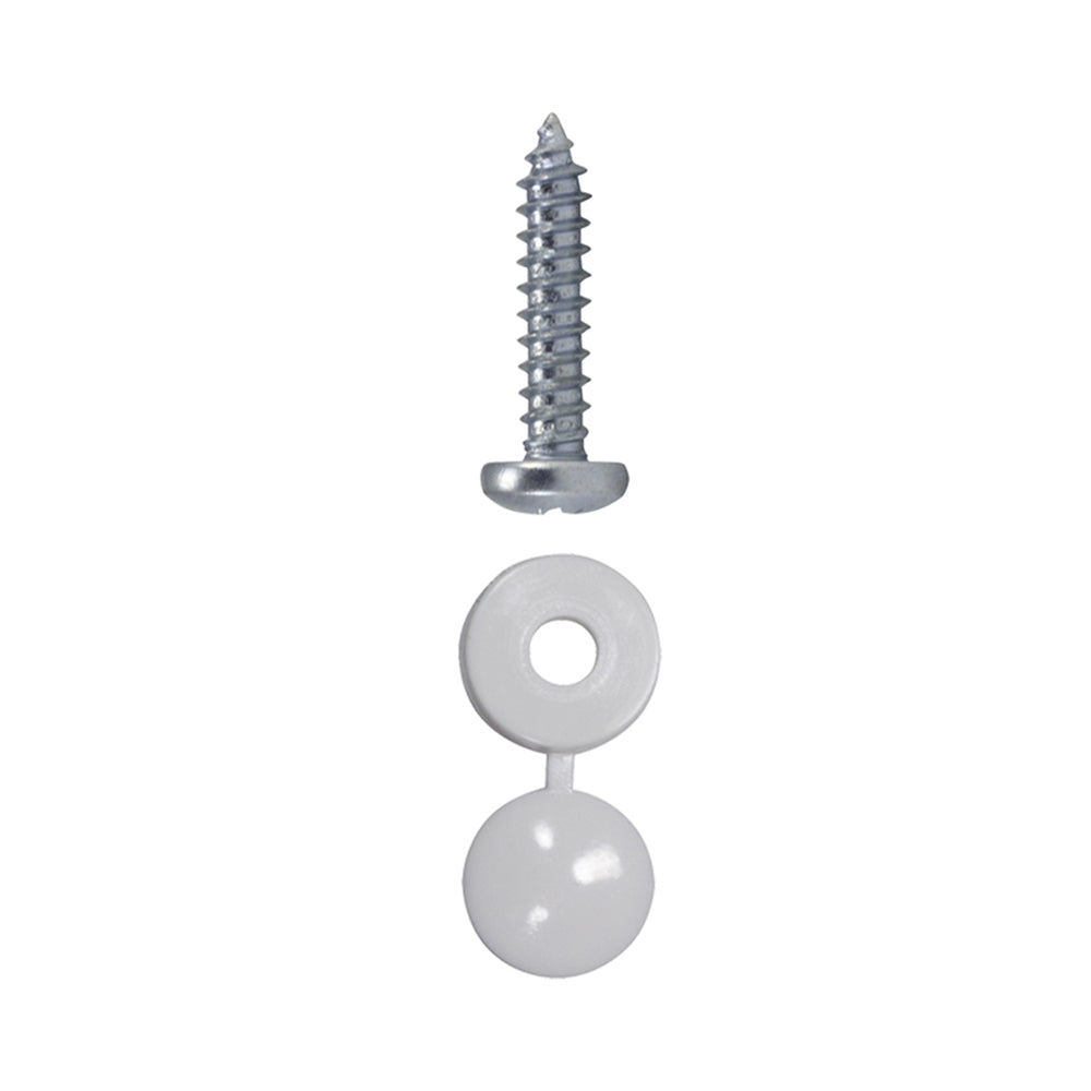 Number Plate Screws & White Hinged Flip Top | 100 Pairs